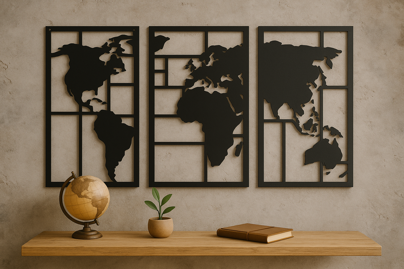 Que ce soit dans un salon, un bureau ou une chambre, ce triptyque s’intègre parfaitement à tous les styles et inspire au voyage et à la découverte. Laissez-vous emporter par son design raffiné et son charme intemporel. 🌍✈️✨